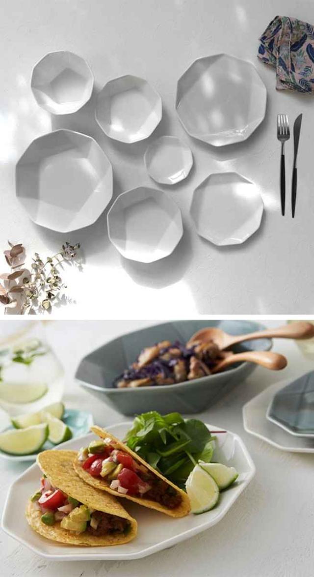 多角形のラインが卓上を引き締める、美しい形状の器「GOKAKU」シリーズ。料理を引き立てたり、食卓のアクセントとなり、新鮮な印象を与えてくれます。