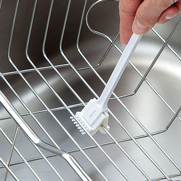 食洗機や水切りカゴ、スポンジ置きなどのワイヤーの繋ぎ目や細部をはさみ洗いできます。洗剤を使わなくても水だけでシンク周りの水垢や油汚れを落とせる便利アイテムです。