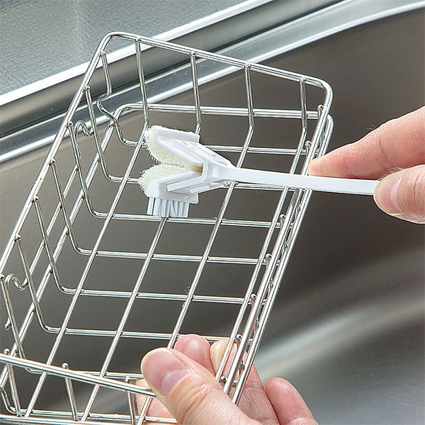 スポンジの表面は極細のナイロンブラシになっており、細かな目やくぼみに入り込みます。洗いにくい水切りカゴのワイヤーの交差部分や隅まで洗えます。落ちにくい場合はクレンザーや練り歯磨きなどをお使いいただくとより効果的です。