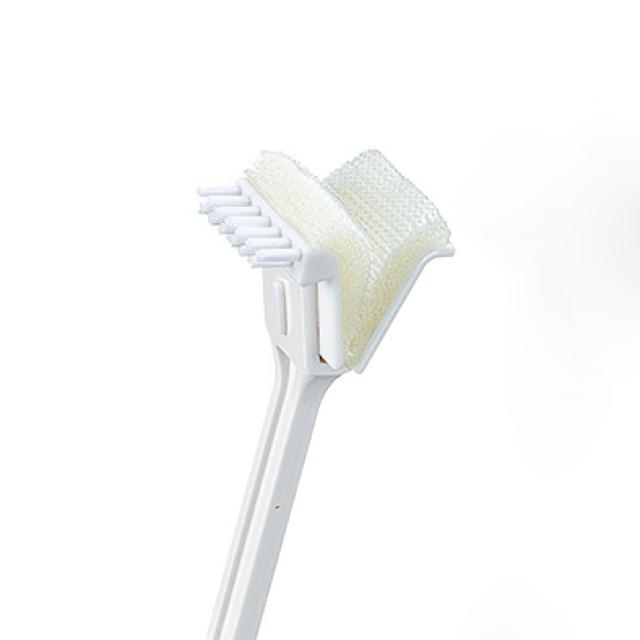 はさみ洗いのできるスポンジと擦り洗いのできるミニブラシ、用途に合わせて使い分け可能です。