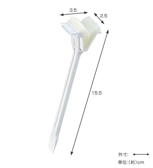 ●先端はこびり付いた汚れ落としに便利なヘラ付きです。