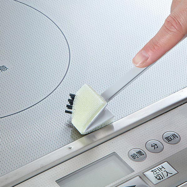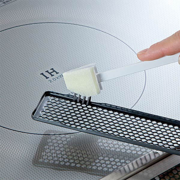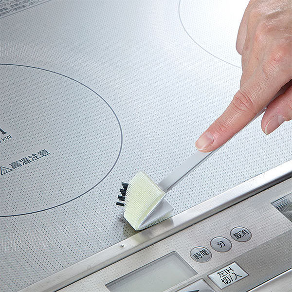 IHなどのガラストップにこびりついた汚れをかき落とせる便利アイテムです。網目や隙間にも入るブラシが付いています。