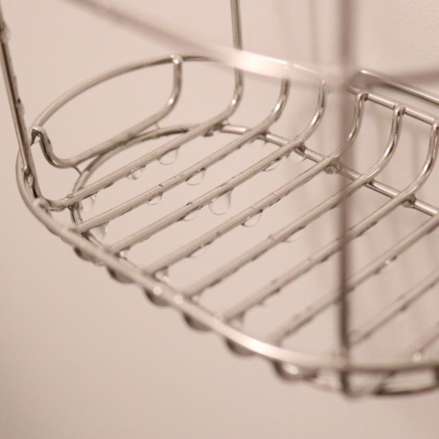 丈夫で汚れにくいステンレス製で、ヌメリが少なく清潔です。ワイヤータイプで石けんを置いてもしっかり水が切れるので石けんがどろどろになることもありません。