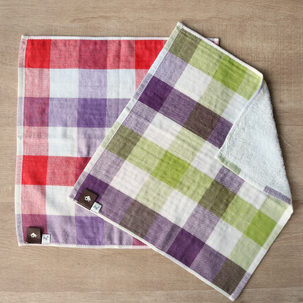 表面がガーゼ、裏は手触りの良いパイル織りのふきんです。ずっと触っていたくなる、優しい生地です。