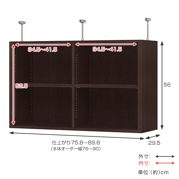 上置き棚 突っ張りタイプ オープス用 Type56 幅76〜90cm ( 収納棚 突っ張り 天井突っ張り オーダー セミオーダー ラック 収納ラック 突っ張り棚 シェルフ オープス専用 オフィス家具 サイズオーダー サイズ指定 )