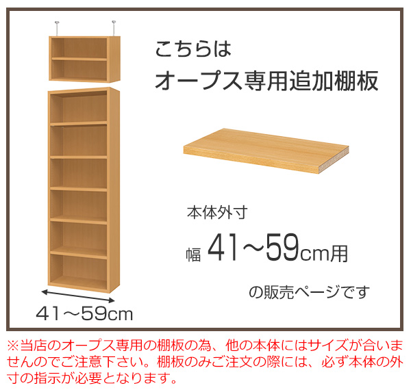 オープス専用 追加棚板 幅41〜59cm用 ( 収納棚 棚板 可動棚 オーダー セミオーダー 追加棚 棚 本棚 収納棚 シェルフ 収納ラック オプション サイズオーダー サイズ指定 )