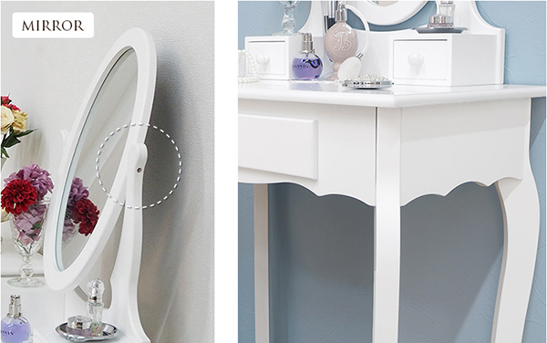 ●ロマンティックな脚とミラーの曲線が可愛いドレッサーセットです。