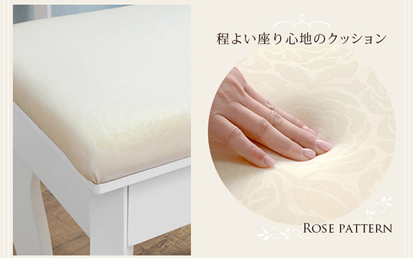 全体的に曲線をあしらった女性らしいデザインがお部屋のロマンチックな雰囲気に!女の子の憧れを、もっと手軽に叶えてくれます。