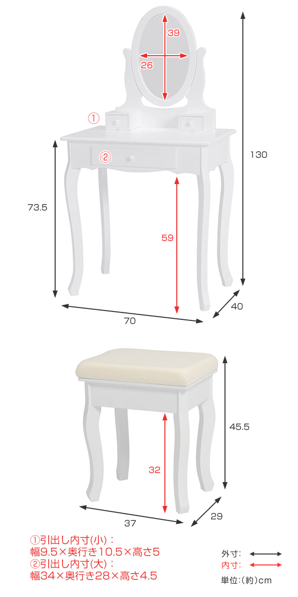 | 内容量 | 1セット(ドレッサー&椅子) |