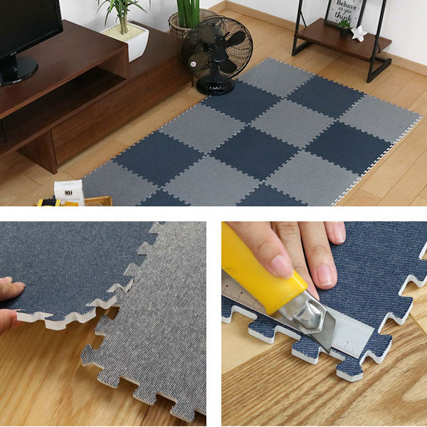 ジョイントマット デニム調 9枚入り 30cm 厚さ0.8cm 0.5畳分 ( カーペット パズルマット フロアマット タイルマット ジョイント式 プレイマット クッションマット ジョイント 防音 傷 キズ 防止 デニム風 おしゃれ 子ども )