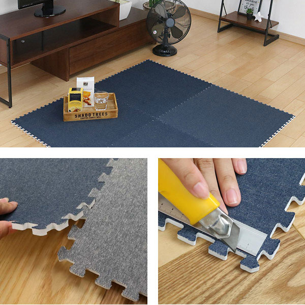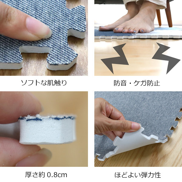 ジョイントマット デニム調 4枚入り 60cm 厚さ0.8cm 0.94畳分 ( カーペット パズルマット フロアマット タイルマット ジョイント式 プレイマット クッションマット ジョイント 防音 傷 キズ 防止 デニム風 おしゃれ 子ども )