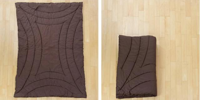 | 【1】布団を広げます。 | 【2】布団を4つ折りにします。 |