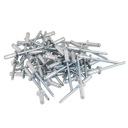 | ・リベット径:4.0mm<br>・下穴寸法:4.1〜4.2mm<br>・締付可能板厚:0.5〜6.4mm<br>・引張強度:150kg<br>・入数:50本入<br>・(材質)フランジ:アルミ/シャフト:スチール |