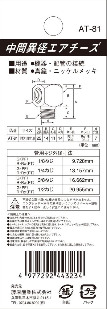 SK11 エアー配管継手 中間異径エアチーズ2M*1F 2口 AT-81に関する詳細なお問合せは下記までお願いします