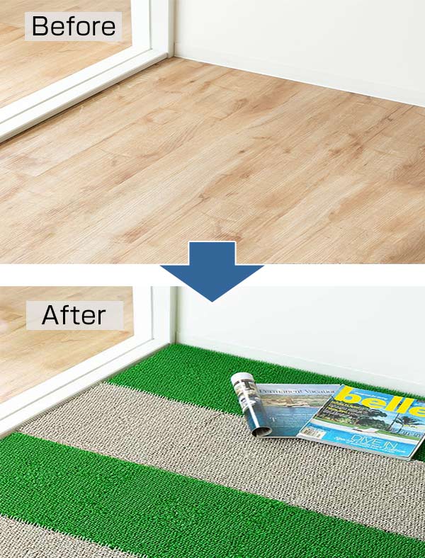 大きなお庭やベランダのような場所に敷くだけでなく、小さいサイズにジョイントするだけで、玄関マットのように使用することもできます。室内に持って入る自転車の泥汚れを落としたり、介護用の車いすのタイヤの泥汚れを落としたりできるので室内に汚れを持って入ってしまうことが少なくなります。その他にもガーデニングや子供が遊んだ後の泥汚れも室内に持って入ることがないように払うことができます。