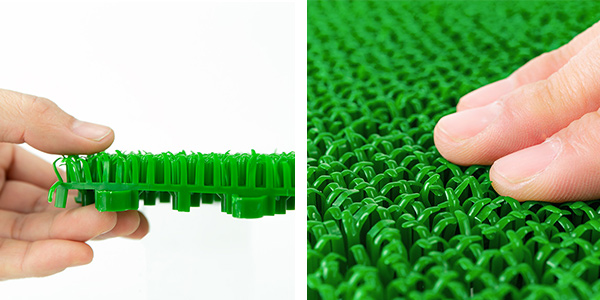 大きいスペースに敷くだけで、殺風景なベランダやお庭が大変身。人工芝なので枯れる心配もなく除草・水やりの手間もかかりません。クッション性があり水はけがよく滑りにくいので場所を選ばず、お年寄りやお子様などにも安心して使っていただけます。