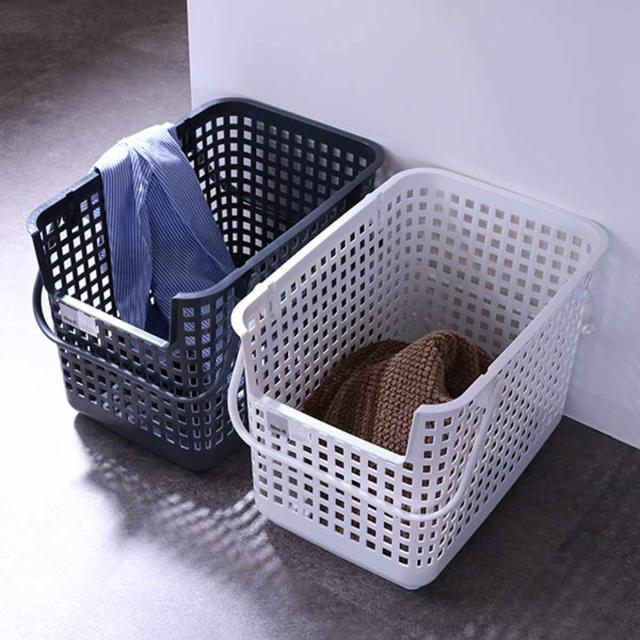 洗濯物用としてはもちろん、収納用としても使いやすく、マルチに活躍するバスケットです。格子状で通気性の良いデザインは、水回りの収納に最適です。