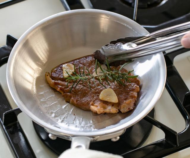 油がミゾに残るので焼きムラも少なく、料理をワンランク上の仕上がりにしてくれます。強火調理にも向いていて、調理中の色合いの変化も見やすいので、お肉やパスタの調理に最適です。