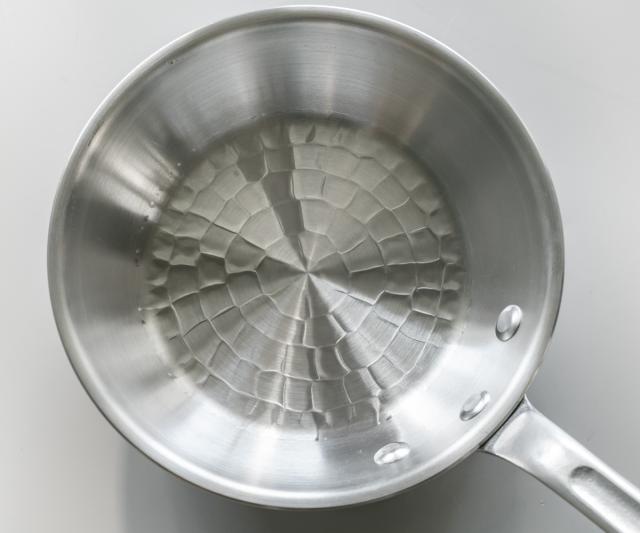 底面に打出しが施されており、強度・熱伝導共にハイクラスのアイテムです。プロユースの丈夫なフライパンなので、長くお使いいただけます。加工が施されていない分、ダイレクトに熱が伝わり、手早く調理できます。