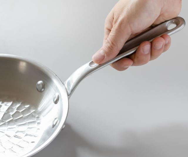 純度の高い国産アルミ材を使用したアルミ製の打出しフライパンです。極厚のアルミ材は軽量でオールマイティに使えます。