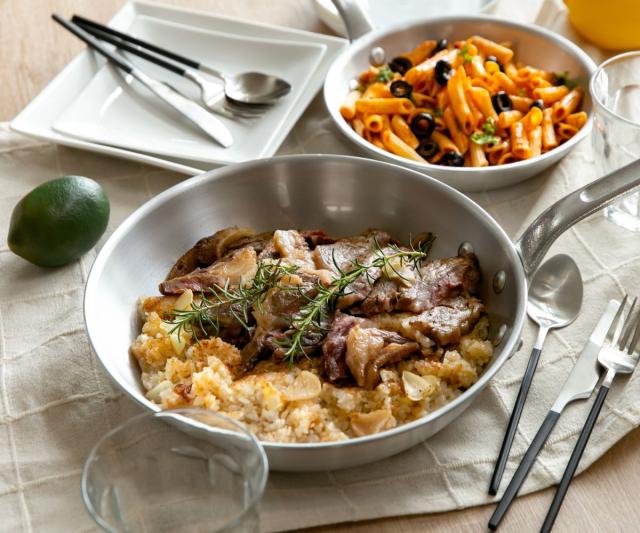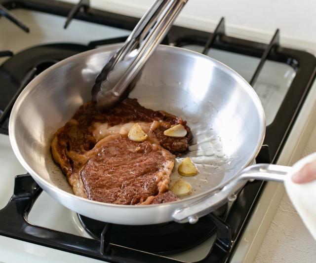 油がミゾに残るので焼きムラも少なく、料理をワンランク上の仕上がりにしてくれます。強火調理にも向いていて、調理中の色合いの変化も見やすいので、お肉やパスタの調理に最適です。