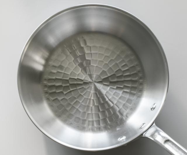 純度の高い国産アルミ材を使用したアルミ製の打出しフライパンです。極厚のアルミ材は軽量でオールマイティに使えます。
