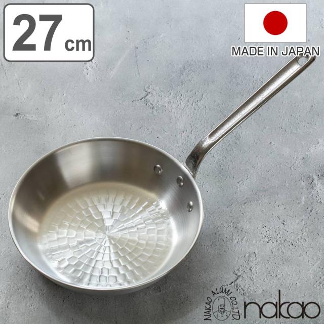 打出フライパン 24cm ガス火専用 アルミ製 中尾アルミ ( ガス火対応 直火専用フライパン アルミフライパン 浅型 日本製 24センチ 打出し加工 いため鍋 炒め鍋 フライパン 24cm)