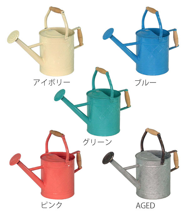 パステルカラーやアンティーク調のカラーバリエーションが豊富なジョウロのシリーズです。日々の生活にはもちろん、新築やお引越しのプレゼントにも最適なデザインです。素朴な質感なので、お花やグリーンを飾ったり、そのまま置いておくだけでもお庭を素敵に彩ります。