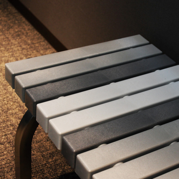 屋内、屋外でも使用可能同じシリーズで揃えると、統一感が高まります。 | シンプルなデザイン景観の雰囲気を崩さないデザインで、落ち着いた雰囲気のロビーや体育館などにおすすめです。 |
