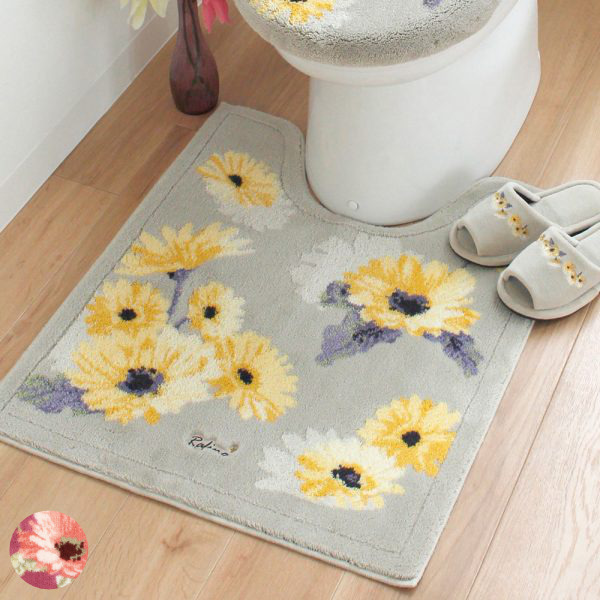 トイレマット 75×63cm ラフィーナ ロングトイレマット 北欧 モダン トイレ マット ( トイレ用マット 足元マット ロング 単品 ノンスリップ 滑り止め すべり止め 75×63 幅63cm 75 63 長め 花 ウィルトン織り 日本製 )