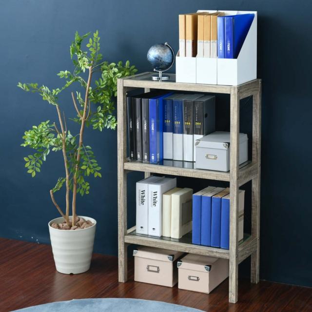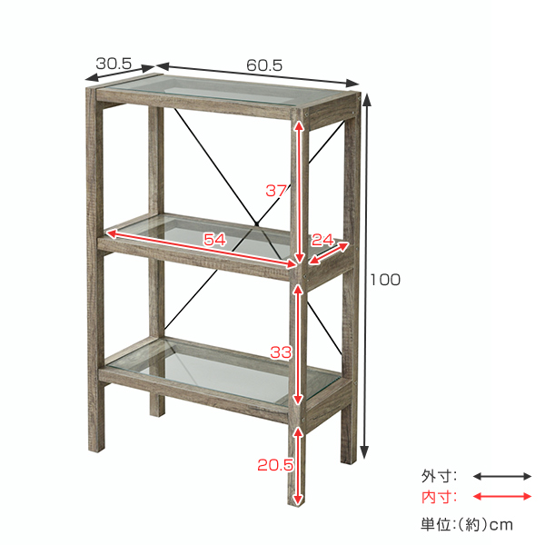 オープンラック 幅60.5cm ガラス棚板 ヴィンテージ調 古木フレーム ( 収納ラック 飾り棚 ディスプレイラック 収納 収納棚 フリーラック ラック 棚 ガラス棚 木目 花台 鉢置き台 魅せる収納 おしゃれ 幅60 60cm )