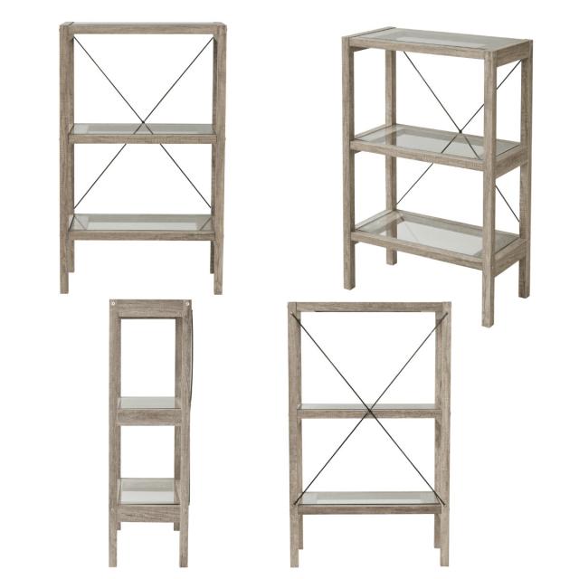 ガラス棚板の抜け感と古木風フレームが爽やかなオープンラック