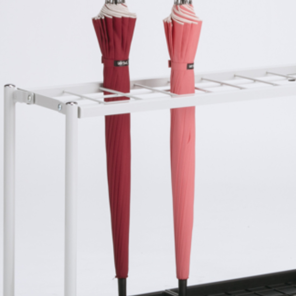 傘が30本収納できます。フレームだけのシンプルなデザインで、様々な景観にマッチします。角型なので、エントランスのスペースを有効に使うことができます。