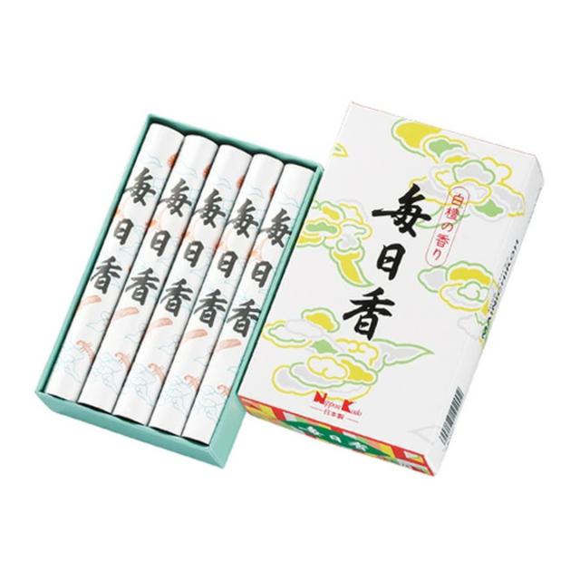 日々を強く生きてゆく人の心の糧として、毎日使ってもらいたいという願いが込められた「毎日香」。日本中で多くの方に愛され続ける、日本のお線香の代名詞的ブランドです。親しみとやすらぎの白檀の香り。ミニ寸のお線香を1把ずつ使うことができる束ねたタイプで10把入りです。