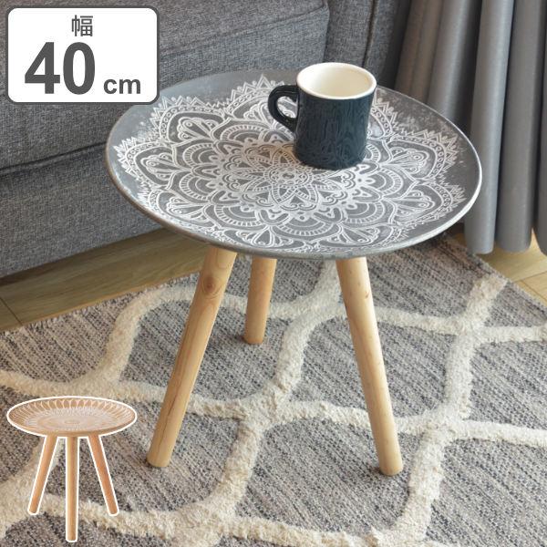 トレーテーブル 高さ37cm 木製 モロッコ風 モロッカン調 サイドテーブル 花台 テーブル 机 つくえ ( ソファテーブル ベッドサイド 丸テーブル 幅 40 ベッドサイドテーブル ミニテーブル おしゃれ 木製テーブル )