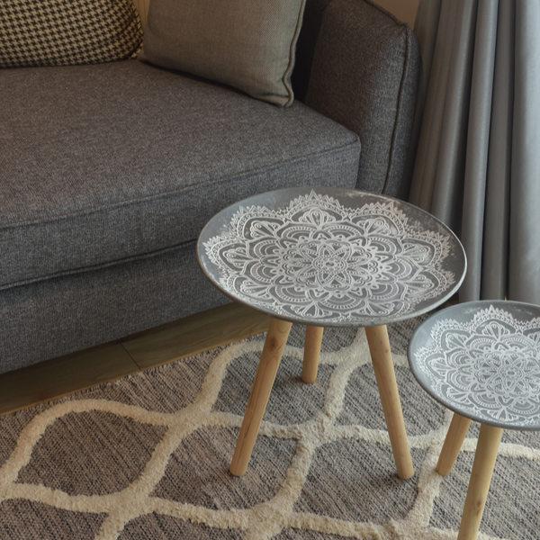 用途に合わせて様々な使い方ができる便利なトレーテーブルです。モロッコ風の模様が美しいテーブルは、シンプルでモダンなお部屋にもピッタリです。