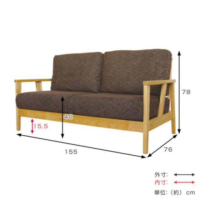ソファ 2人掛け 2.5人掛け 幅155cm 布張り ナチュラル色フレーム ( 開梱設置 天然木 木製 フレーム 二人掛け フロアソファ リビングソファ 肘掛け 北欧 おしゃれ リビング ローソファ )