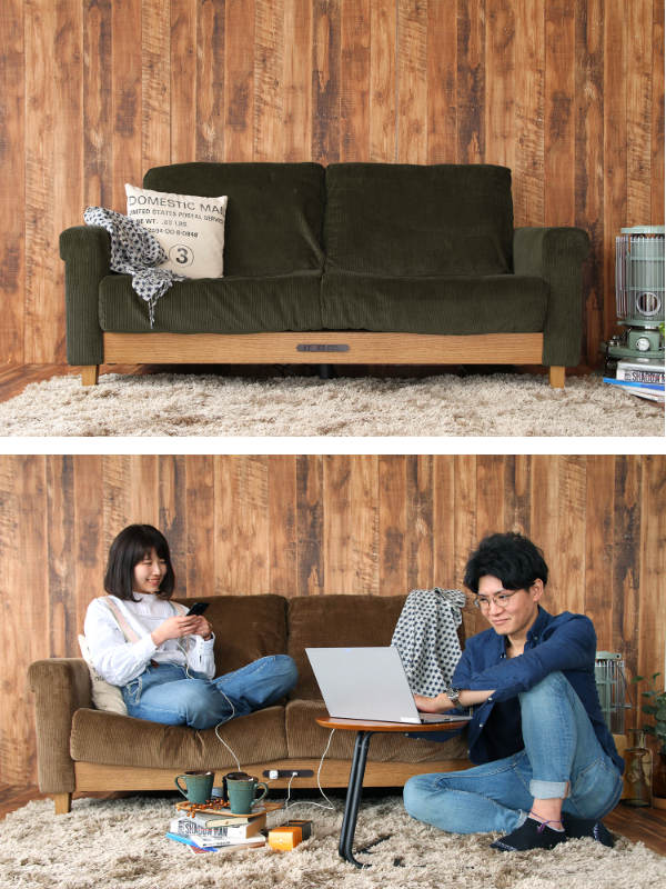 コンセント・USB付きのシックでおしゃれなソファ
