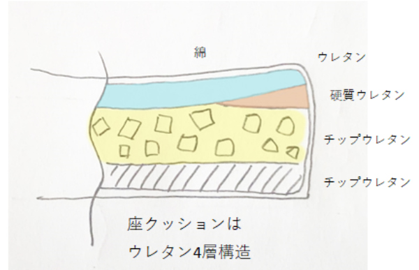 座クッションはウレタン4層構造になっているので座り心地も抜群です。