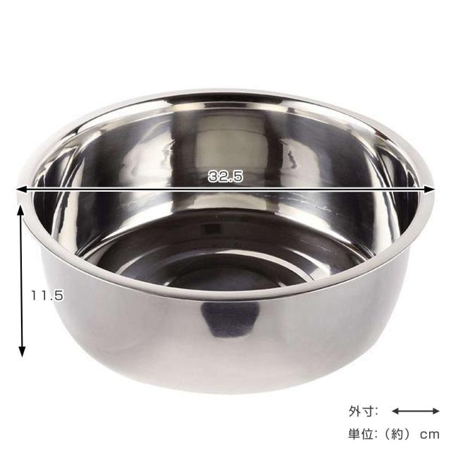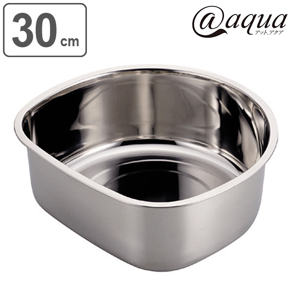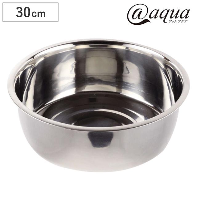 洗い桶 丸型 直径30cm ステンレス製 アットアクア 排水穴なし ゴム脚なし ( 洗桶 洗いおけ たらい タライ 桶 おけ オケ つけ置き 脚なし シンク用品 キッチン用品 食器洗い用 食器洗い 水回り )