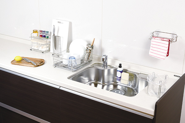 ●耐久性が高いステンレス素材を使用した洗い桶です。