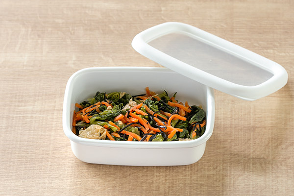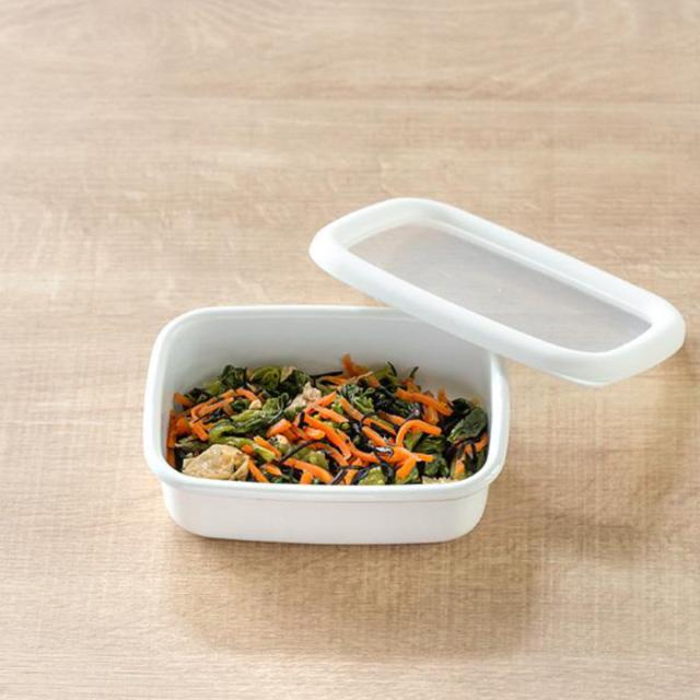 表面がガラス質のホーロー製品は、色やにおい、酸に強く様々な食品の保存に適しています。どんな料理もすっきり美しく演出してくれる、オールホワイトのカラーで常備菜作りや作り置きも楽しくなります。