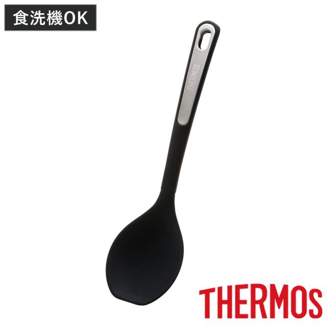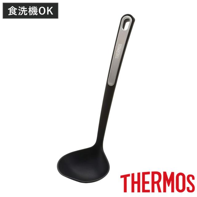 サーモス レードル ナイロン 食洗機対応 耐熱 ( THERMOS お玉 おたま スプーン 穴なし 穴無し キッチン 料理用 調理用 キッチンツール 下ごしらえ 調理器具 黒 ブラック シリコーン )