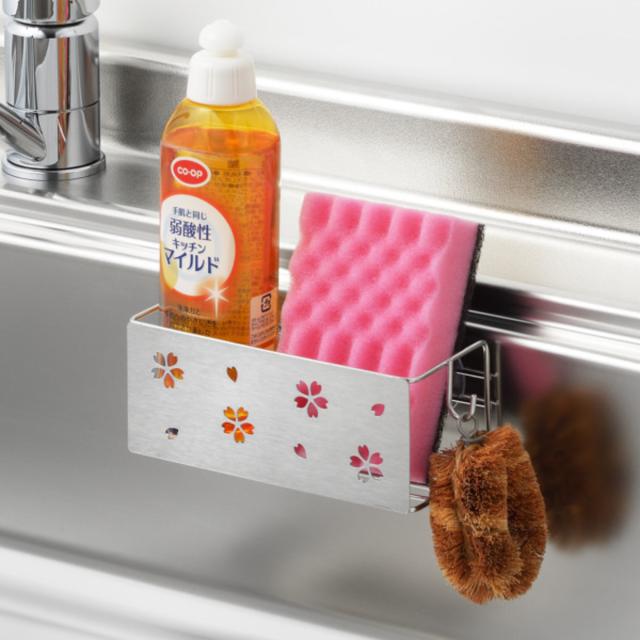 スポンジラック 桜 コンパクト 洗剤・スポンジラック ( 日本製 ステンレス スポンジホルダー スポンジ置き スポンジ入れ シンクポケット 洗剤 ボトル スポンジ たわし置き たわし入れ キッチン 水回り シンク 収納 )