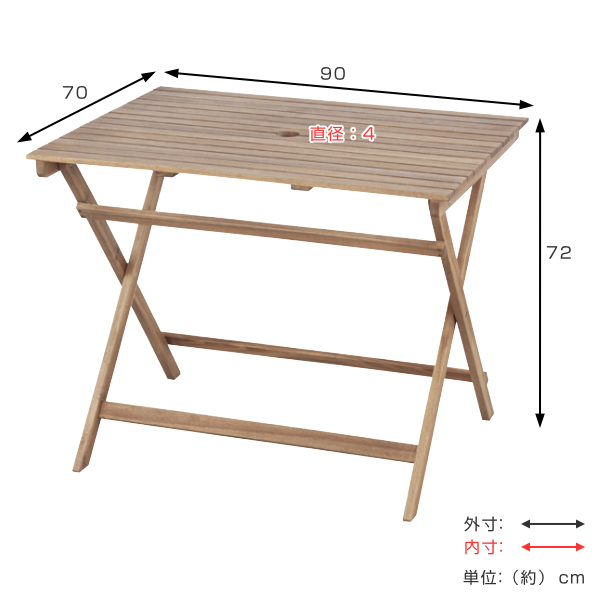 パラソルが挿せる、天然木の折りたたみガーデンテーブル
