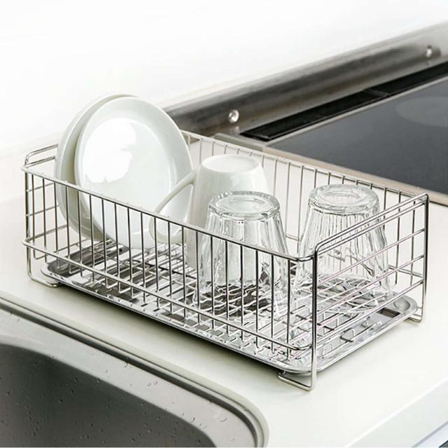 シンプルで無駄のないデザインの水切りバスケットは、どんなキッチンとも相性抜群。使い勝手がよく、お皿やグラスもまとめてスッキリ入れられます。スリムタイプなので、幅が20cmあればシンク横のスペースにも置けます。