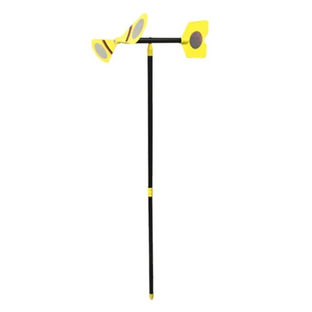 風の力でプロペラが回転して、支柱に振動が伝わって、地中のモグラを追い払います。プロペラと尾翼のホログラムが光って、鳥よけ効果があります。