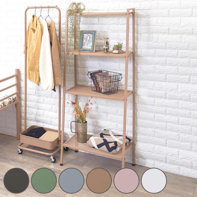 オープンラック 幅59cm 4段 スチールラック アースカラー ( ラック 棚 収納 収納棚 飾り棚 ディスプレイラック 花台 ディスプレイ キャスター付 スチール くすみカラー シンプル )