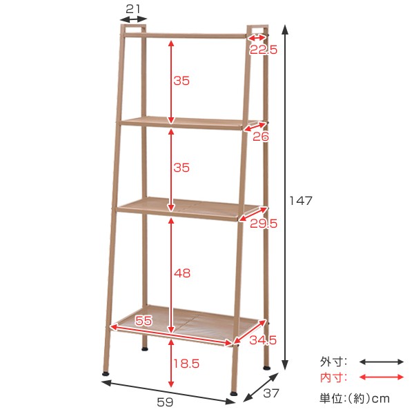 人気のアースカラーで大人かわいいオープンラック 幅59cm