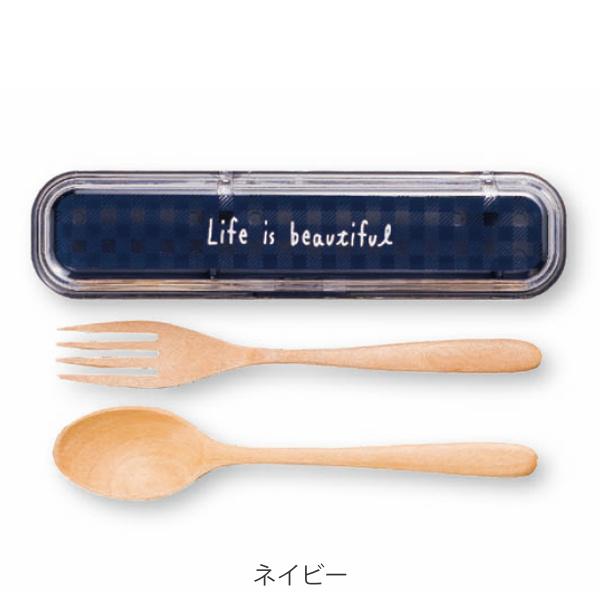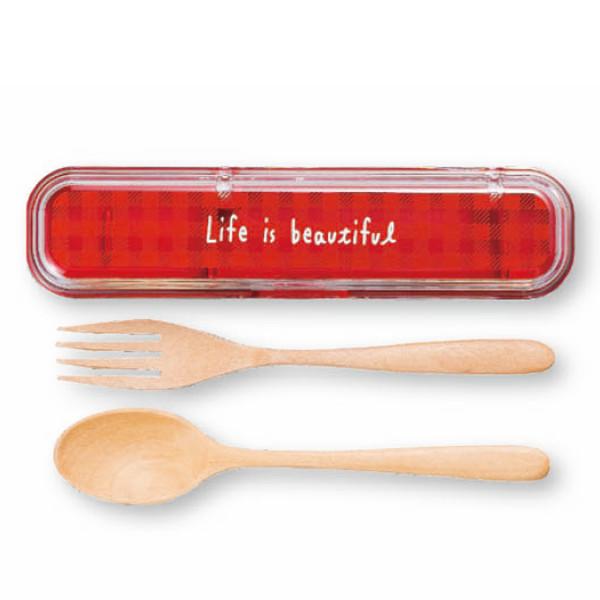 コンビセット スプーン フォーク LIFE IS BEAUTIFUL 木製 ギンガムチェック ( カトラリーセット スプーン&フォーク お弁当用 携帯用カトラリー カトラリー コンビ お洒落 シンプル コンパクト ウッド 木 ランチグッズ チェック )